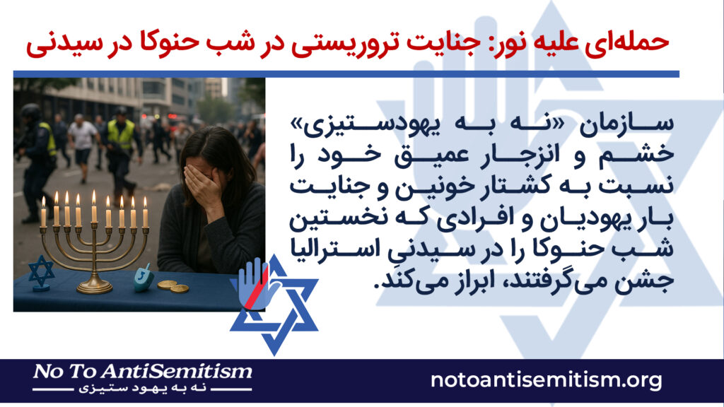 سازمان «نه به یهودستیزی» خشم و انزجار عمیق خود را نسبت به کشتار خونین و جنایتبار یهودیان و افرادی که نخستین شب حنوکا را در سیدنیِ استرالیا جشن میگرفتند، ابراز میکند.