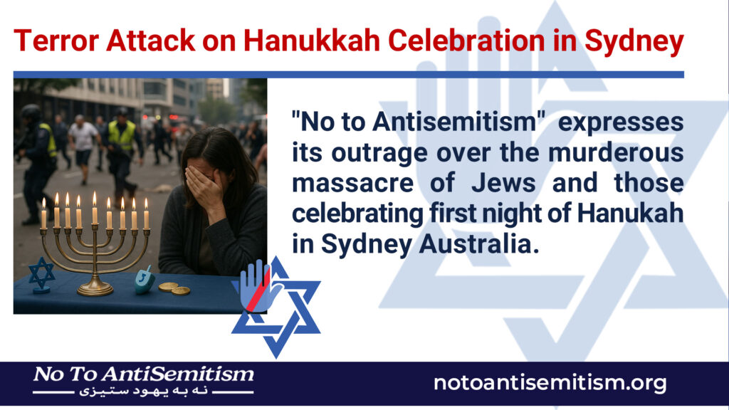 “No to Antisemitism” expresses its outrage over the murderous massacre of Jews and those celebrating first night of Hanukah in Sydney Australia.